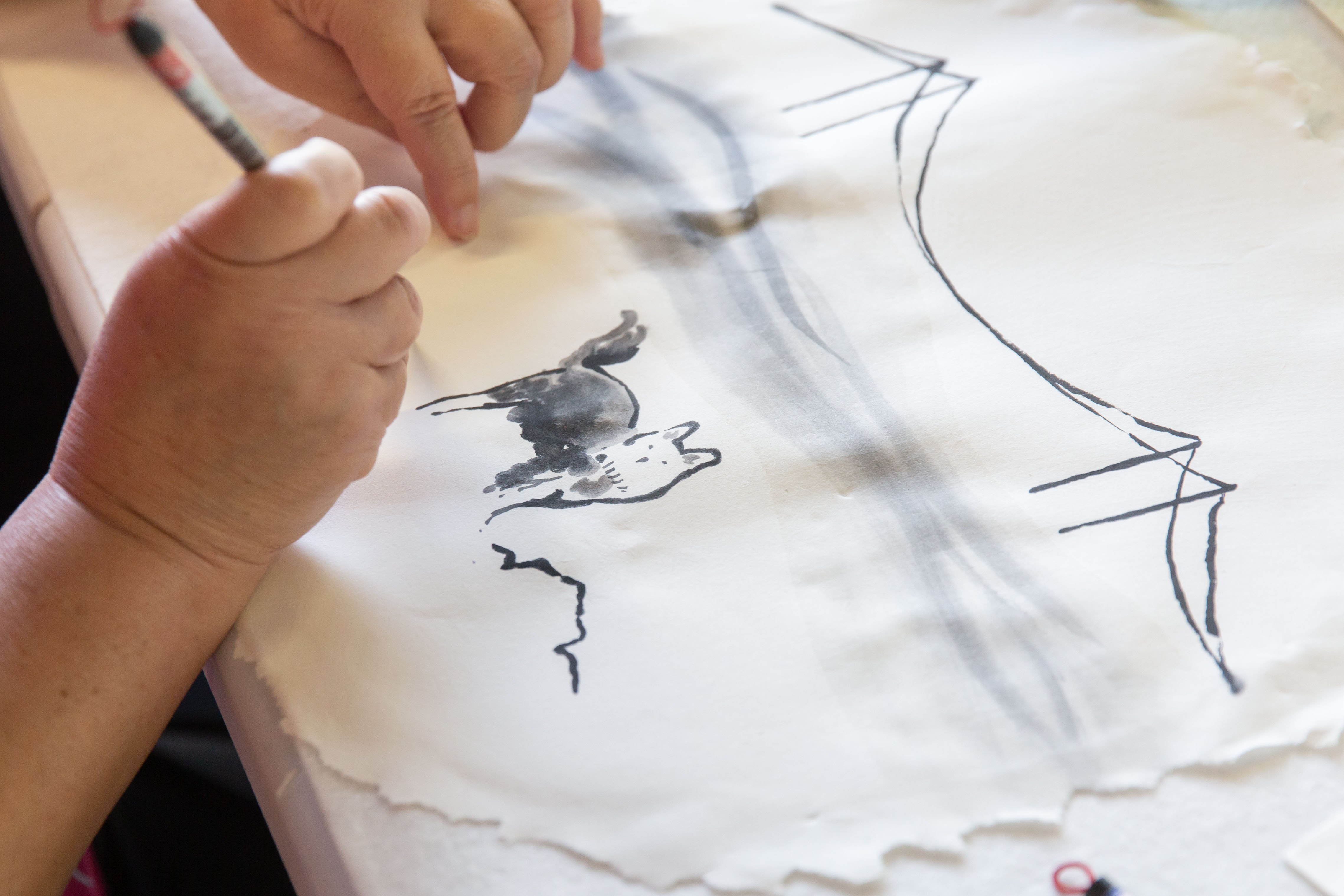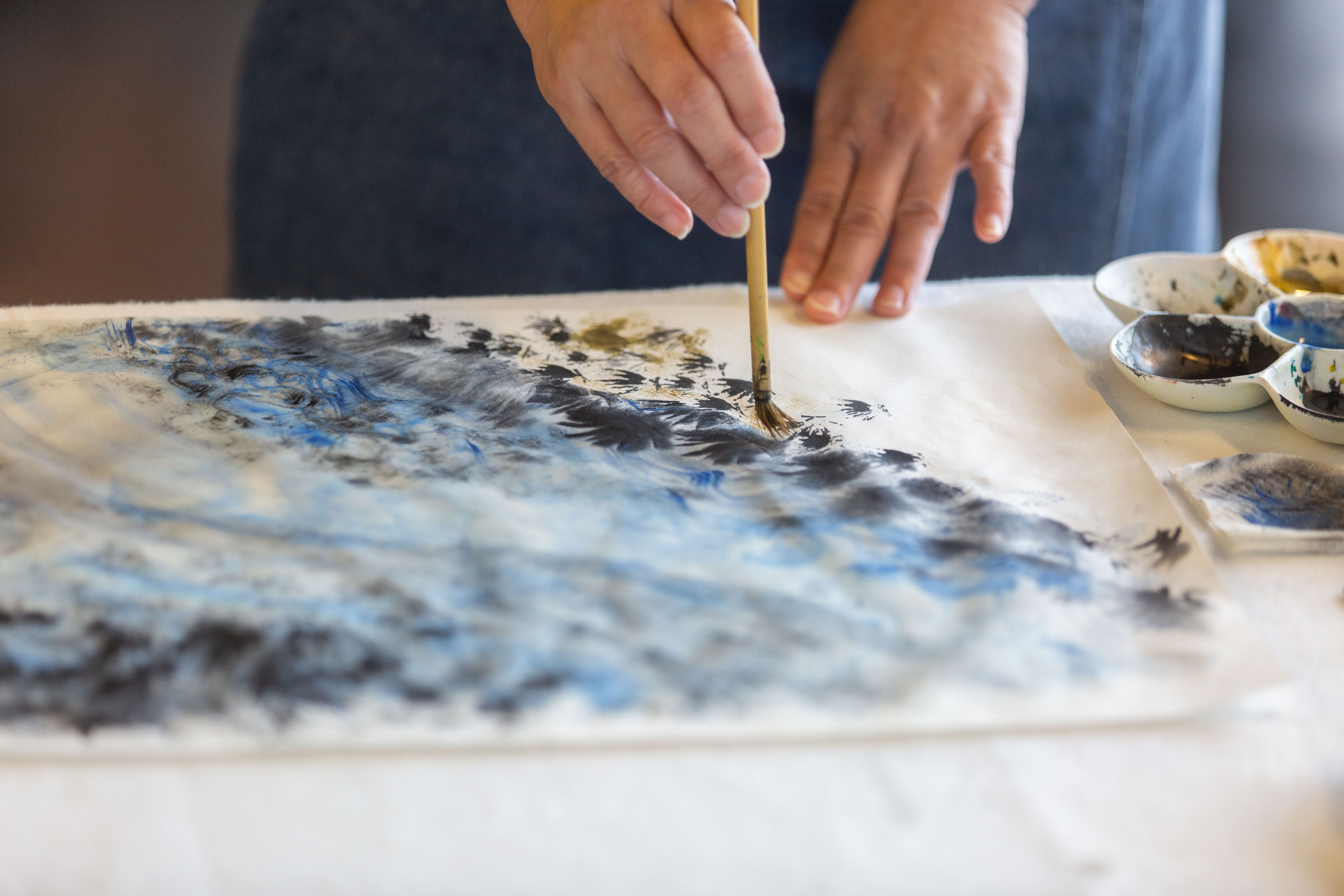 今年街事美術館以龍思良筆下五光十色的士林夜市(漳州人的新街聚落)作為楔子/跋,邀請劇場設計師林昭安,和當代水墨藝術家高安柏,各別企劃帶領居民共創工作坊,與總計17位社區夥伴合作,將地方住民於山林中迴返內在的心境,與兒時悠遊於基隆廢河道、溪流水圳的吉光片羽,凝聚成2組現地藝術創作,引領觀者隨著北藝中心天橋逐級攀升、下降的階梯或坡道,遊歷在地人心中的山光水色。